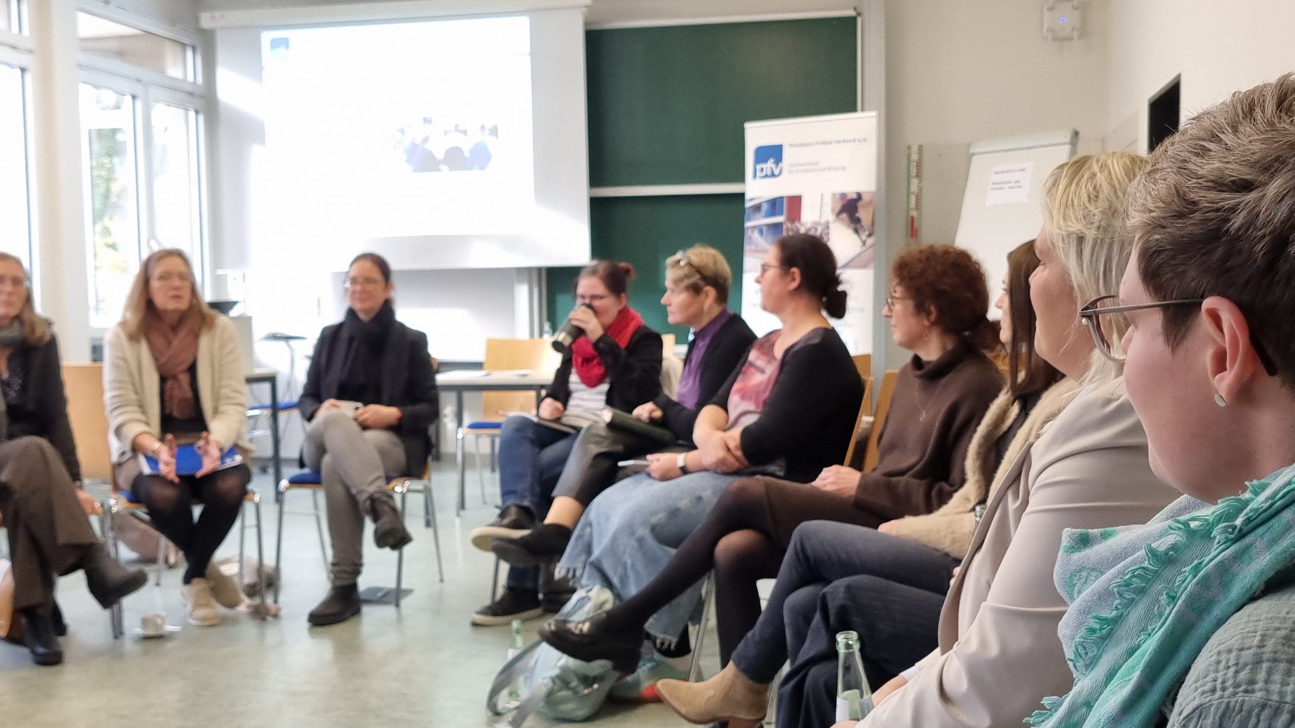 In den hellen und freundlichen Räumen des IBEB fanden sich ca. 40 Interessierte aus Praxis, Verwaltung und Wissenschaft zu dem Thema ein. Mit dem ausdrücklichen Ziel, die Anregungen und Gedanken der Anwesenden in den Arbeitsprozess des KMK/JFMK-Arbeitskreises einzubringen, freuten sich die Referentinnen Xenia Roth und Julia Burkard über eine lebhafte Diskussion und konstruktive Beiträge.