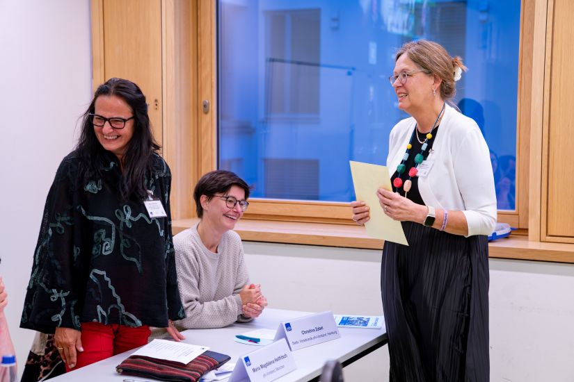 Die nicht mehr zur Wahl stehenden Mitglieder Christina Zabel (nach drei Wahlperioden), Regina Esch (abwesend) und Maria M. Hellfritsch erhielten als Dank eine kleine Überraschung und einen lauten Applaus!